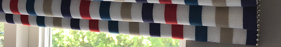 The master suite has lovely existing carpet and the bed and bedside tables had to remain too. This is a double aspect room and although, as with most barn conversions, the windows are small the rooms throughout the property are so very light and this master bedroom suite is no exception. We have used a beautiful Harlequin wallpaper with a reflective oyster background with beautifully detailed birds in lovely jewel colours. We’ve then designed a Chaise Longue to suit our clients requirements and this is upholstered in a soft cut pile chenille fabric. The roman blinds are again using a lovely reflective thick satin fabric with a beautiful beaded trim along the bottom edge, these are lined and interlined to give that deep plush feel. We have also added a beautiful bespoke French mattress seat cushion to an existing window seat.